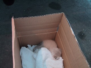 ガレージに帰ってくると TAKUさんの奥様が連れてきたかわいいお客様が(^_^)。 会社近くに捨てられてた子猫だそうです。カワイイ!! |