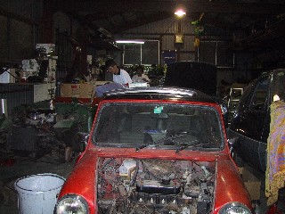 | 夕食後、TAKAさんを誘って 大阪のHAYAさんガレージを深夜の訪問。 イノチェンティミニはオリジナルの良い感じなんです。 |
