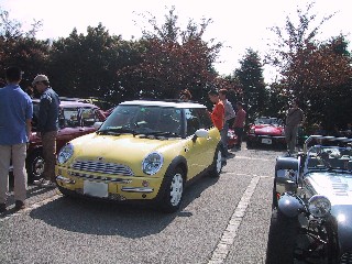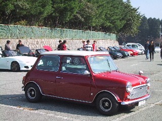 NAKAさんのMINI なんとワンオーナーだそうです。 後にはユーノス軍団。左端はFUTAちゃんの愛車です。 |