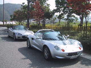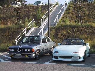 | 第一集合場所で西チーム TAKAさんBMWとFUTAちゃんユーノスと合流です。 R175からR427を走って北へ向かいました。 |
