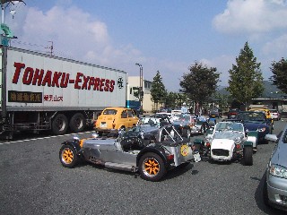 第二集合場所の青垣ではセブン軍団がやってきました。 あと東チームはS2000が一台、ジネッタ、エリーゼ NEWミニとFIAT500、スーパーVWが来てました。 |