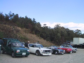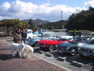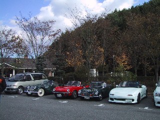 | オープン車を並べて記念撮影! 今日は結構寒いよネ(^_^;)。 |