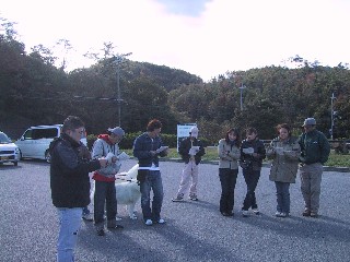 いよいよ、ドライバーミーティングが始りました。 実行委員のTAKUさんの説明を真剣に聞いています。 |