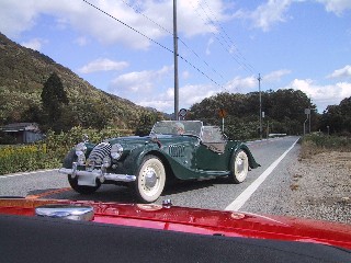 途中KANさんのモーガンをM美ちゃんが運転する事に! おーい!だいじょうぶですか?? |