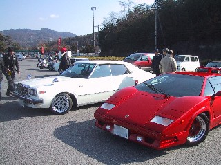 | いつもカウンタックの横にはなんとIMAさんの新兵器! c230ローレルです。予想通りピカピカです。 |