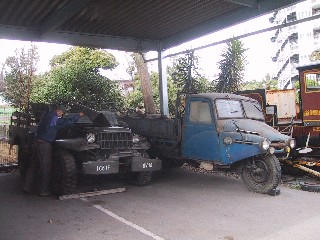 大きな三輪「トクサン」は知っていましたが、 横の軍用車両は知らない車でした。 実はTANAさんは結構句詳しくていろいろ教えて頂きました。 日本にそのまま残っているのは 大変珍しいらしいです。 |