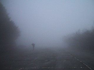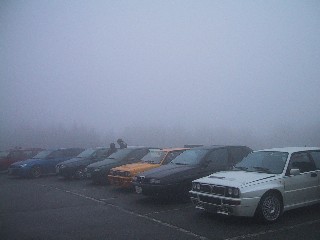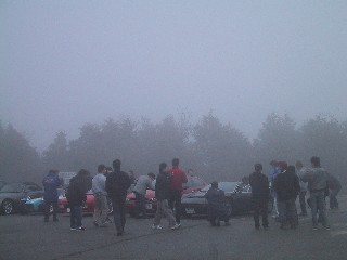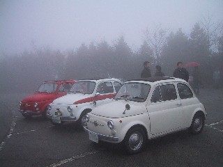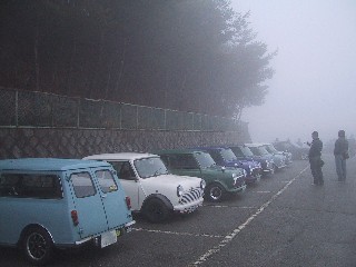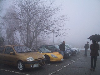 下道を走り、9時に妙見山に到着… 山上は霧で真っ白!この時、車は10台くらいカナ? |