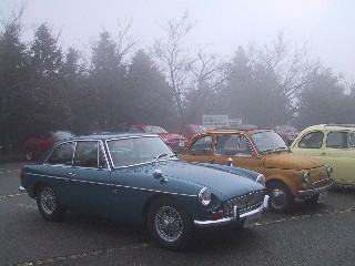 | ミニ仲間もあとからたくさん来られています。 | 落ち着いた感じのMGB−GT 色も奇麗でピカピカの車でした。 |