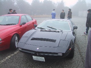 | 珍しい車がやって来るとみんな集まります。 | 正体はマセラティーメラク 黒のピカピカなスーパーカーです。 |