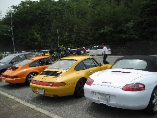 | もうすでにポルシェ仲間のfujitakuさん、チーさんが 朝のツーリングを終えてこちらに来られていました。 |