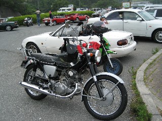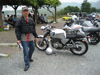 エランMINさんは単車で登場! GB500はメッキタンクで決っています。 |