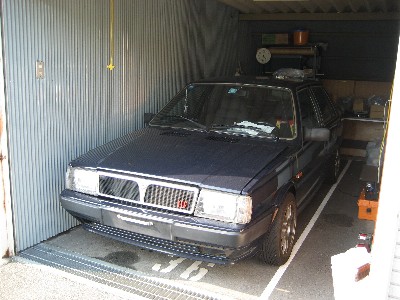 | 実は平日のお休み…家の用事を済ませてガレージでごそごそ作業。 昼からもう一度戻ってくると…隣にはランチアが入っていました(^_^)! |