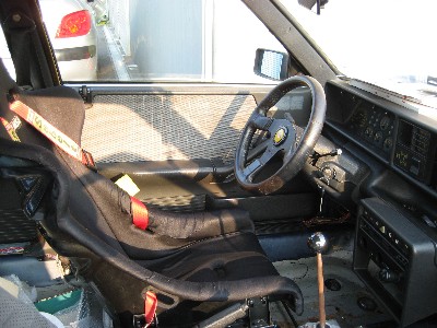 | 赤いほうで峠道を越えて昔よく行っていたラーメン屋さんで昼食。 VITZに乗り換え車屋さんで中古車探検… もう一度ガレージに帰ると…お隣に見慣れない車が入っていました。 ナンバーなしの紺のランチアはプリズマのサーキット仕様です。 ONさんの知り合いでこのガレージを紹介されたそうです。 早速拝見(^_^)! |