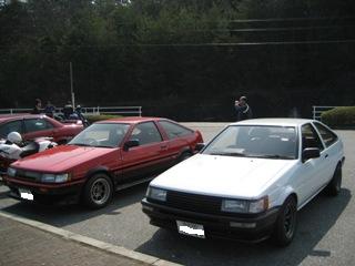| LBは神戸のセリカ仲間MUKAさん | MさんのTE27も久しぶりです。 |