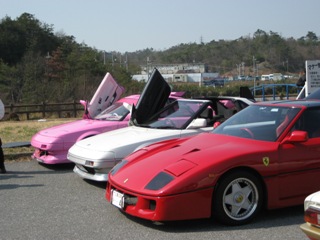 | 大阪の車仲間・Nさんがお友達とやって来ました。 328が3台、そしてミウラも! |