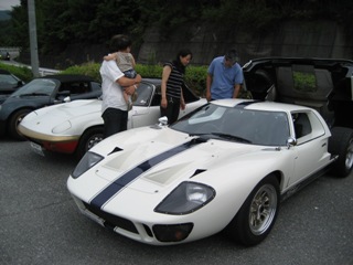 | もう沢山の仲間たちが来られています。 TさんのGT40は綺麗な白に青ラインです。 |