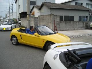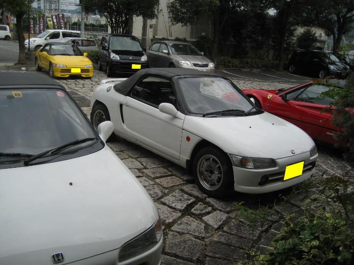 | 車仲間の店・山崎「ダ・ヴィンチ」で昼食を食べる事になりました。 HOUZさんの白ビートはとても調子がよさそうです。 |