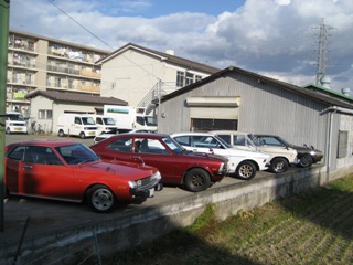 | ゴールはTANAさんの秘密倉庫です。 近くの喫茶店でティータイムのあと、 倉庫の中でゆっくりさせて頂きました。 でも、こうして旧い車が並ぶと ちょっとした中古車屋さんのようですね〜。 どうしましょう?飛び込みでお客さんが来られたら(^_^;)? |