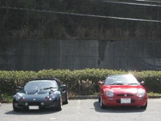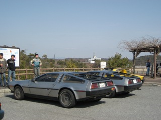 | デロリアンが2台並ぶのも珍しいかも?? | こちらはいつもの仲間 AKIRAさん・ヨッシィーさん 共に英国ミッドシップスポーツです。 |