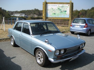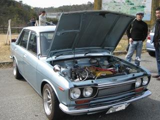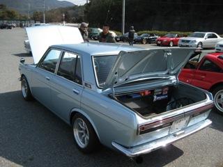 | TDM仲間・京都GOTさんの510。 英国ヒストリックスポーツを数台所有のGOTさんが 最近ベースを入手し、一から仕上げた車です。 ピカピカのボディー 統一され張り替えられた内装 見事に決まった足回り エンジンはSR20のキャブ仕上げ クーペテールの流れるフラッシャー もう最高の一台です。 |