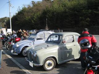 | TUCHIさんのオースティンも久し振りにお会いしました。 ご友人の2CVは良い感じに使い込まれた雰囲気の車です。 ※画像は撮り忘れましたが… YABU親分は新兵器のジムニー、TAI君は足車のワゴンR、OIさんも足車メルセデス、 久し振りのチーさんのボクスター、Fさんの黄色ビートも来られてました。 |