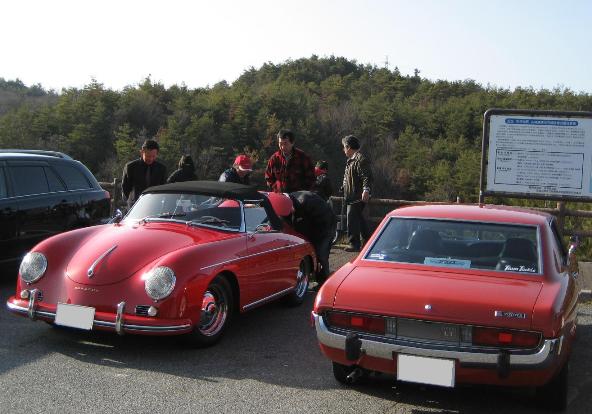 時間は3時頃…いつもの場所で缶珈琲でも… 今日は誰も居ないだろうなぁ…と思いながら寄ってみましたが お!赤の356・Mさんの車です。 |