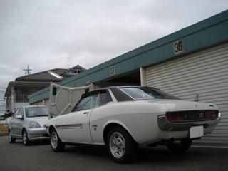 | 朝は早起き!とりあえずはガレージに行きました。 到着すると雨が上がっていたので、 白GTを少しだけ走らせました。 |