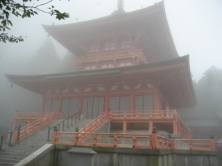 延暦寺に到着しました。 ここからはもちろん歩いて回ります。 霧も出ていて神秘的な雰囲気・・・ |