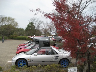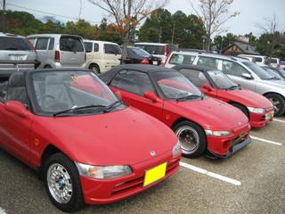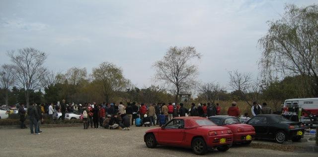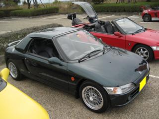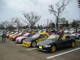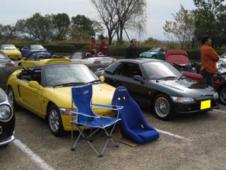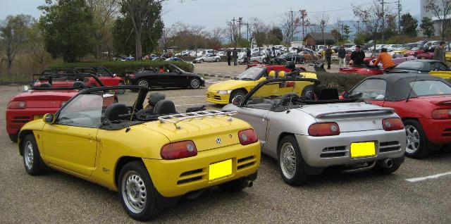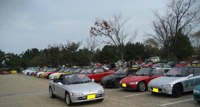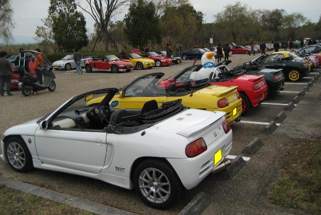 | 公園の駐車場にはたくさんのビートが集まっていました。100台以上だそうです。 ちょうど終わり際のジャンケン大会が行われていましたよ〜 |