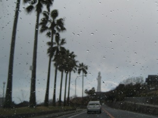 | いや〜な雲の下…ポツポツ雨も降ってきました。 昔、怪しいクラシックカー博物館が有った大きな仏様 まだ建っていたんですね〜 |