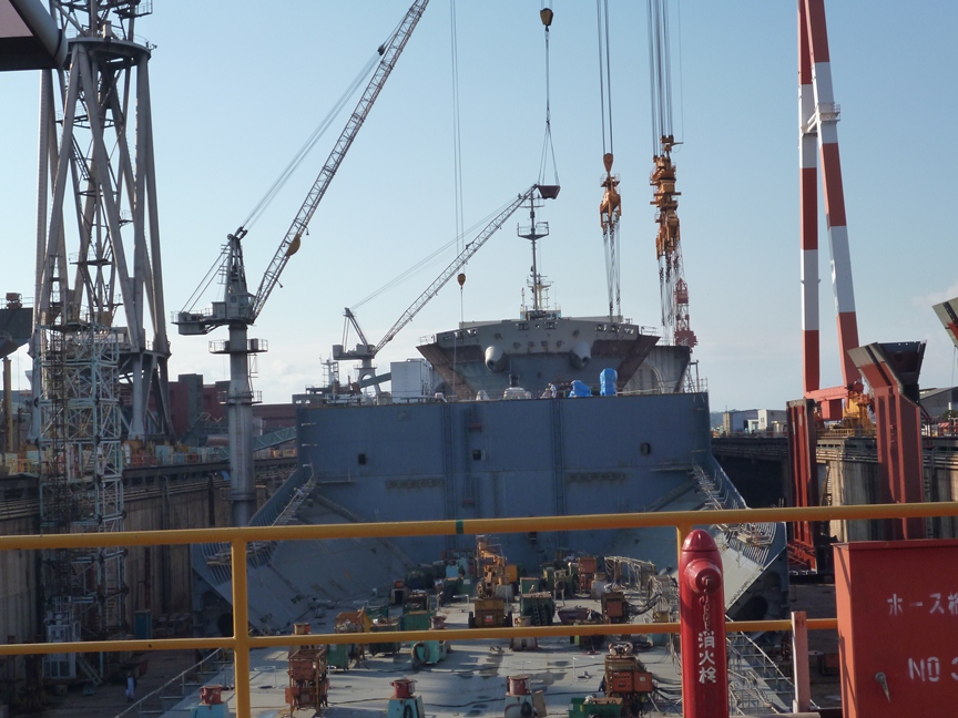 | ホテルのサービスで隣接の造船所を見学させて貰う事になりました。 サナヤス造船…画像にすると小さく見えますが、本当にスケールの大きな工場です。 良い体験させて頂きました〜(^_^)。 |
