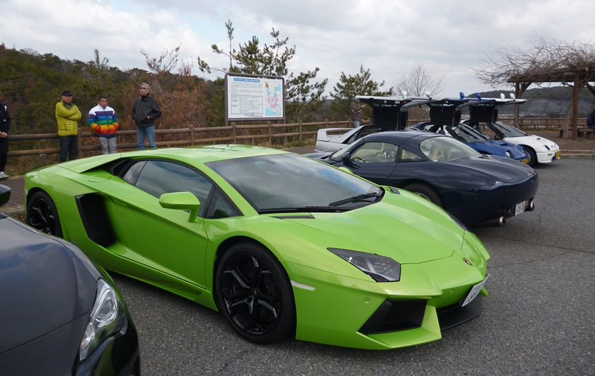 | いきなりすごい車がお出迎えです。 MINさんのお友達のランボルギーニ最新モデル… MINさんは奥様用の新車・BR-Zで来られてました(^_^)。 |