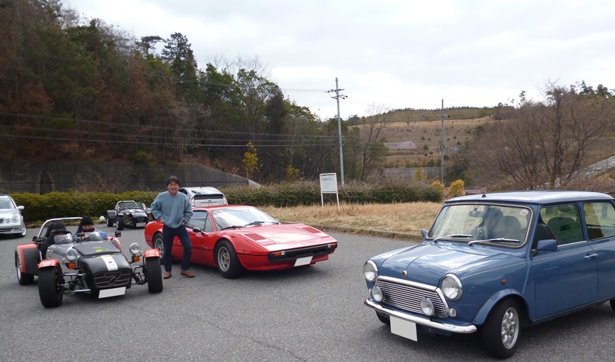 | 12時前にランチへ出かける仲間たち… 品の良いブルーのミニはなんとエス親分Fさんが最近入手された一台です(^_^)。 |