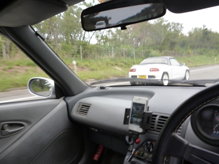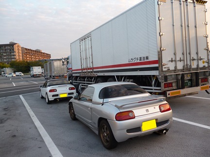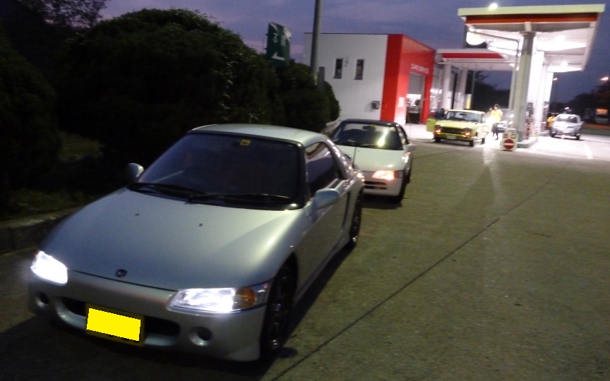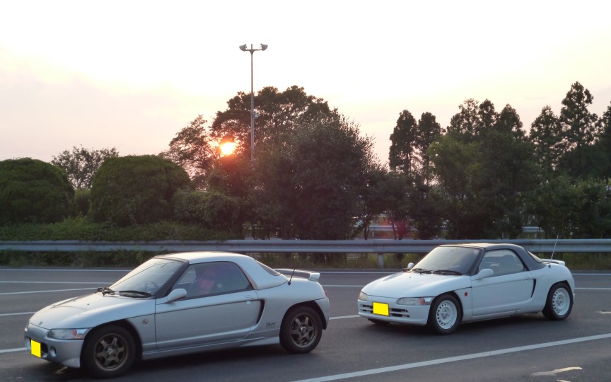 約束の時間通りにSINさんと合流。 白ビートは足回りを少し調整されたとのこと。 |