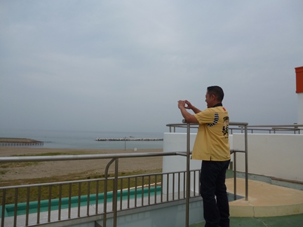 | 道中、結構なハイペースで走っていきます。 | 徳光SAでちょっと休憩。 日本海に感動されているSINさん。 |