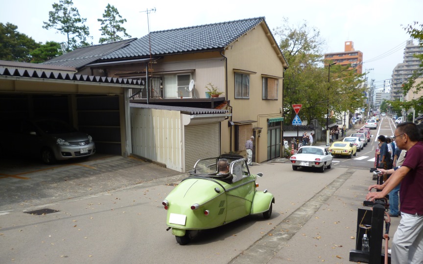 | SINさんと「お昼ご飯」を食べに行くために町中を散策… うろうろ歩いているとパレード中のマイクロカーに遭遇。 本当に小さな車です〜可愛い〜 |