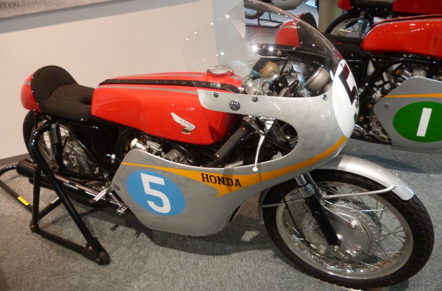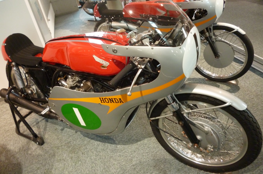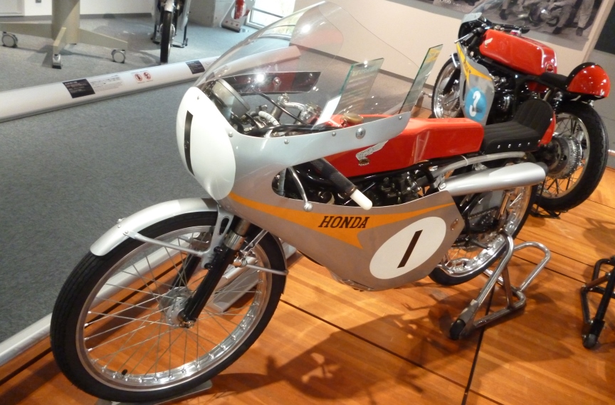 | 3階に上った途端に感動して涙出そうになりました。 ため息が出るほどすごいコレクションです。 ホンダの当時の「本気」「挑戦」「夢」が溢れ出ております。 掲載した画像は個人の趣味です。 同じようなレーサーが並びますがご了承下さい(^_^;)。 また知識不足で誤記が有っては申し訳ないので、素人記述になっております。 (レーサーは機種名をクリックして頂くとコレクションホールの説明にリンク致します。) |
