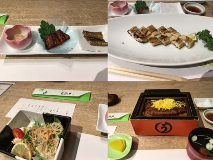 | 高速で余裕の時間に到着かと思いましたが、 熊本では車線規制も有り、結構時間が掛かってしましましたね。 夕方6時の雨の中、何とか宿に辿り着きました。 予約していた夕食は「鰻づくし」コースです。 |