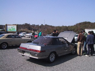解散後ガレージにやってきたエスハチです。 みんなで夕方まで車の話で盛り上がりました。 |