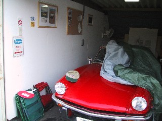 | SIN君とガレージで待ち合わせ… ガレージから椅子をたくさん引っ張り出して、 帽子と団扇…準備万端です。 |