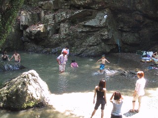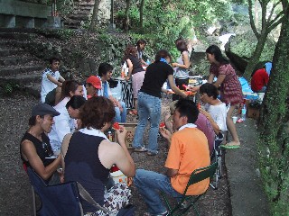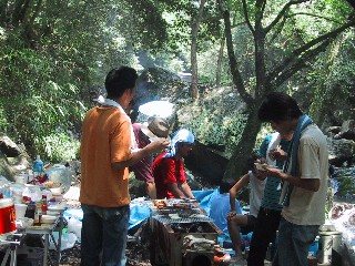 | バーべQの場所は素敵な渓谷なんです。 水遊びで楽しむメンバーもたくさん居られました。 もちろん僕は見学者(^_^;)。 |