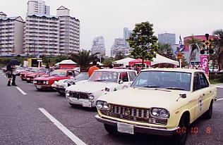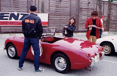 | 会場は「リエゾンドライビングスクール」の中で 参加車両がスタートを待っています。 大好きな赤のエランの横は セリカ仲間のYOKOさん。 後ろの横断歩道はもちろん教習所の 中に有るものです。 |