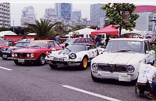 | アルファに囲まれたランチャ・ストラトス。 この辺になると格が違ってきますね。 でもこんなすごい車たちと一緒に走れるんです。 |