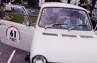 | 清水さんはエヌコロで参加。 (本日参加で一番小さい車!) お昼のサンドイッチをスタート前に 食べておられました。 奥さんと仲良く参加です。羨ましい… |