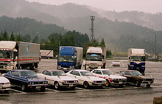 | あいにくの雨の中、 セリカで高速を飛ばします。 |
